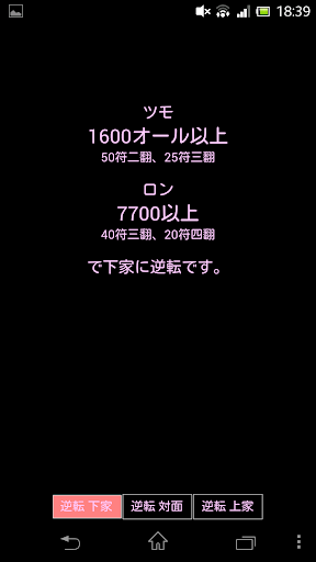 4,計算ボタンを押すと、何符何翻あがれば逆転するかを表示します。