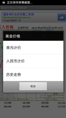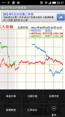 android安桌智能手机黄金价格实时查看器,可以24小时查看股票,期货信息,包括A股,港股,以及全球各大股市的股票信息,各国外汇和全球各大期货市场的各类期货信息。数据实时更新!可以对自己买卖和关心的股票进行定制,随时查看涨跌幅。可以详细查看国际黄金白银的价格和3日内金银价走势图。包括即时,当日以及以往每日,每月,每年的历史走势。全面的财经新闻资讯,实时更新!基金查询,彩票的开奖信息查询。常用网站导航,查看当前的外汇牌价和汇率。方便实用的金算盘计算器更是叫你每时每刻算出你日进斗金,随时理财。可放大缩小,方便查看. 世界黄金白银协会当天公布的报告显示,2011年第二季度,全球黄金需求量为919.8公吨,合445亿美元,达到全球黄金季度需求量历史第二高位。 黄金价格实时查看器你值得拥有,只要你的手机安装了黄金价格实时查看器,手机就不在是一个简单的电话,而是一个能让你每分每秒都在为你赚钱的工具!本软件简单实用,打开速度快,浏览方便,完全免费,欢迎使用,感谢每一个使用过的人,谢谢!