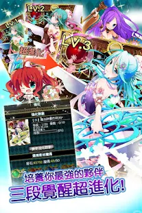 遊戲中每張卡牌都可進行3階段的進化,進化的話能力就會上升,魔偶的外觀也會跟著改變。只要玩家擁有複數同一張角色,就可執行進化功能。進化的時候可分別從強化對像跟素材魔偶中繼承10%的能力,如果是等級練滿的魔偶實行進化的話還可繼承20%的能力!所以要盡可能讓魔偶成長之後再進化會比較好喔!