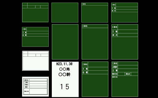 ・工事黒板を17種類から選択できます。有料版では任意の黒板が利用できます。