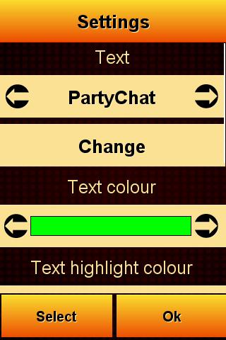 它再次在迪斯科太大聲?您是令人難以置信的甜美女孩在角落裡留下深刻的印象,但你不知道如何告訴她!在一個擁擠的火車熱傢伙簡直是無法訪問!黨的聊天,終於可以通過一個選取框元素的手機顯示屏上滾動您的郵件或您的狀態。電話號碼或調情文本 - 改變你喜歡的文字,在這裡你去!您可以適應黨的聊天您的喜好,不僅文本可自由編輯,但黨的聊天中也提供了很酷的效果,你可以突出你的消息。
