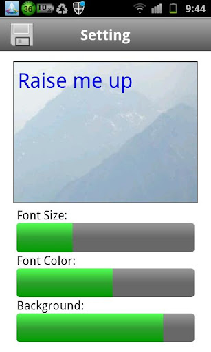 字體大小隨心意,從10號選至40號;底圖可自選純色、風景或仿紙的