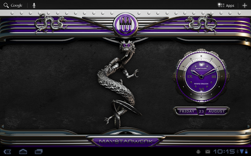 得到现在还龙紫色下发射器主题和龙紫色数字时钟部件并完成您的桌面设计。