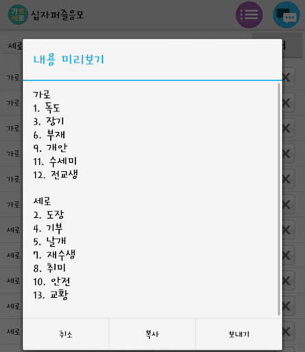 가로세로 퍼즐 응모를 위해 간편하게 응모를 도와주는 앱입니다.