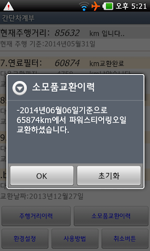 차량 소모품의 교환주기를 입력하여 교환시기를 가르쳐 줍니다.