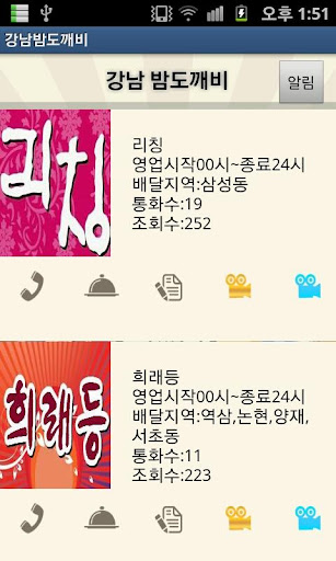 서울 강남지역의 야식배달업소의 정보를 제공하는 앱니다.