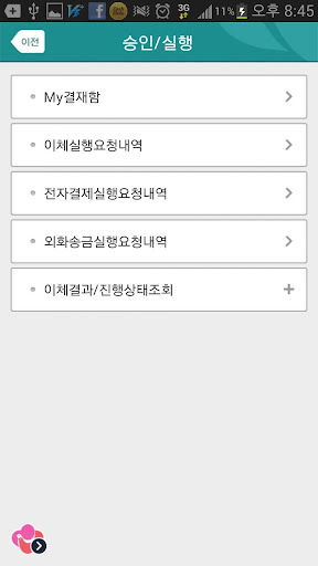 ④ 인터넷뱅킹과 연계를 통하여 사무실 PC에서 결재를 상신하고 SMS/PUSH 알림서비스를 통하여 승인자가 외부에서 스마트기업뱅킹으로 승인/결재 업무를 진행 할 수 있도록 구현하였습니다.