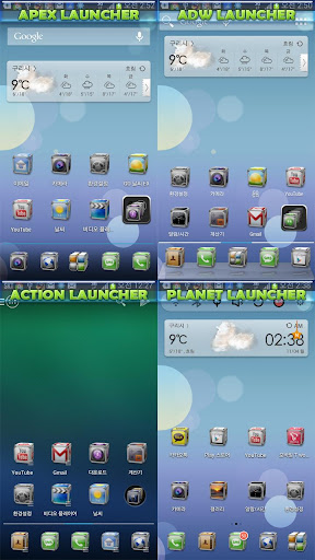 - 고 런처, ADW 런처, 넥스트 런처, 노바 런처, 아펙스 런처, 홀로 런처, 스마트 런처, 엑션 런처, 솔로 런처, 플래닛 런처, 도돌 런처, 아톰 런처를 지원 또는 호환됩니다( 테스트 되지 않은 또다른 런처와 호환 가능 ).