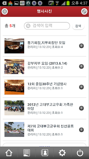 2. 총동문회 산하 각 기수등도 모임별로 별도 어플을 만들어 사용할 수 있습니다.(총동문회 + 각 기수 + 지역모임 + 동호회). 각 모임별 별도 어플생성, 아이디는 전체 하나의 아이디 사용.