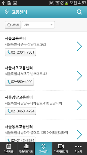 - 지역별 고용센터, 내위치에서 가까운 고용센터 별로 선택을 하여 전국의 고용센터 위치와 전화번호를 소개합니다.