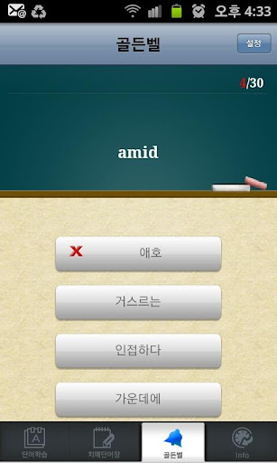 단어가 너무 외워지지 않아! 죽어도 외워지지 않는 단어는 '치매단어장'에 따로 등록하여 사용하세요. 워드킹으로 쌓은 영어 단어 실력은 골든벨을 통해 뽐내보세요. 트위터와 페이스북으로 친구들에게 자랑하기도 잊지 마세요. You can be the wordking!