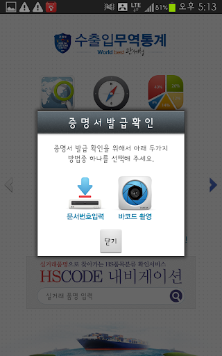 관세청과 한국관세무역개발원이 공동 개발한 모바일 투역통계서비스!!