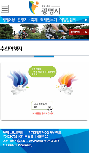 광명시 문화관광 앱은 여행시 필요한 관광명소, 문화유적, 축제ㆍ공연, 견학ㆍ체험, 맛집, 레저스포츠, 숙박시설 등을 제공합니다.