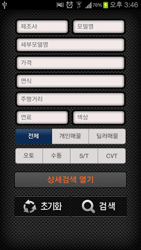 - 제조사, 모델, 세부모델, 가격 등 기본검색부터 주행거리, 연료, 차량 옵션 등 상세검색까지