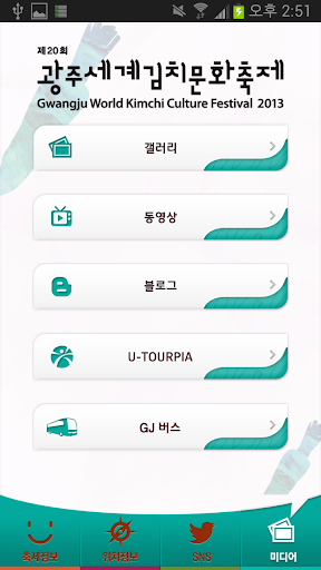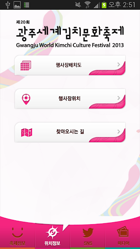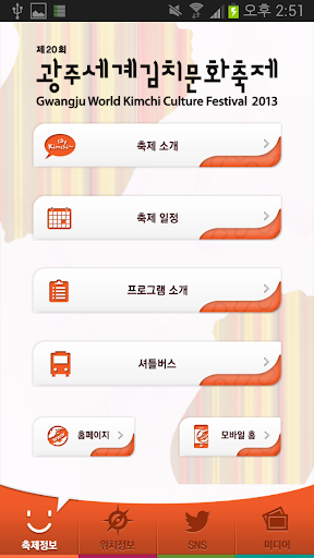 예로부터 의향, 예향, 미향의 도시로 알려져 있는 광주광역시의 대표적인 축제인 광주세계김치문화축제를 소개하고 다양한 우리의 전통음식인 김치를 문화로 즐기고 축제를 통해 김치산업을 촉진하는 다양한 프로그램을 소개하는 어플리케이션입니다.