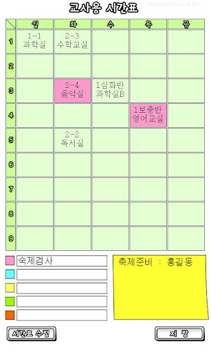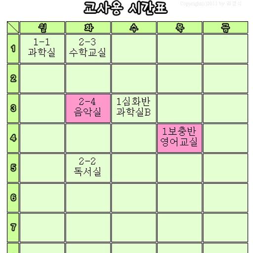 단지 교과교실제를 실시하는 학교처럼 여러글자가 들어가야 하는 교사를 위한 시간표이다. 최대 8글자 까지 넣을 수 있다.