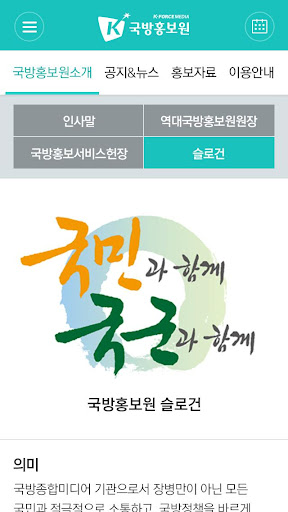 국방홍보원 앱은 국방홍보 기관에 대한 전반적인 내용을 다루고 있습니다.