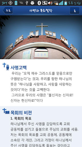 1. 교회안내 : 사명과목회철학, 사역소개, 예배와 모임안내, 섬기는분들, 오시는길, 교회행사사진