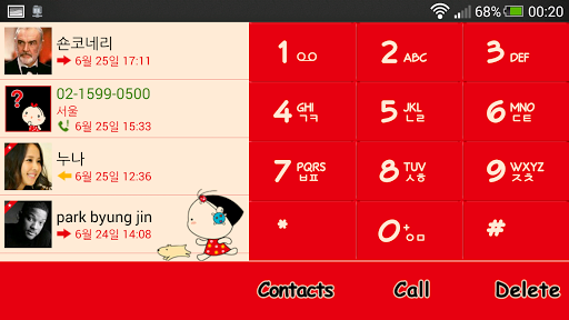 귀여운소녀 꼬지지로 꾸민 다이얼패드입니다.