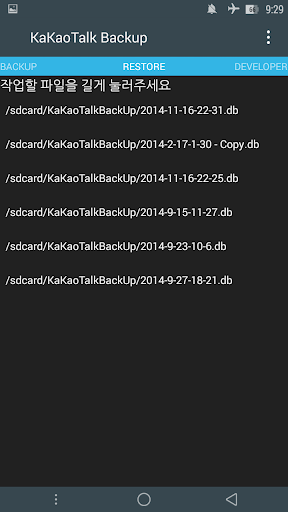 - 카카오톡이 설치된 경우에만 백업/복원이 가능합니다.