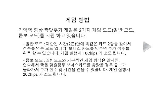 기억력 향상 짝맞추기 게임은 2가지 모드를 지원하고 있습니다.
