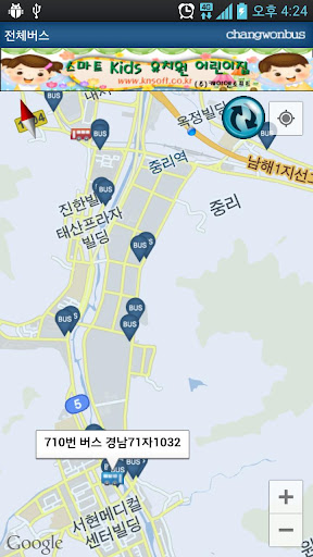 ▶ 구글맵에서 새로고침 추가(클릭 시 실시간 버스이동 보여줌(10 - 30초 후에 버스가 변경됩니다.)