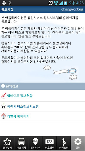 ▶ 본 어플리케이션은 창원시 버스정보시스템의 홈페이지를 참조합니다.