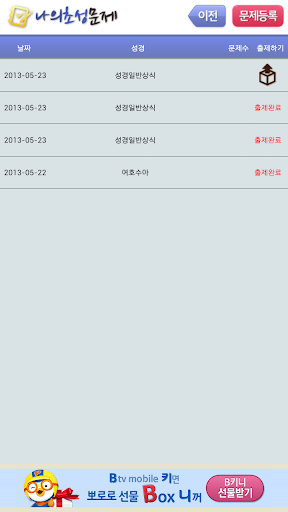 2. 나의 초성문제 : 내가 작성한 초성문제를 관리하는 메뉴, 출제 및 참석자도 알수 있습니다.
