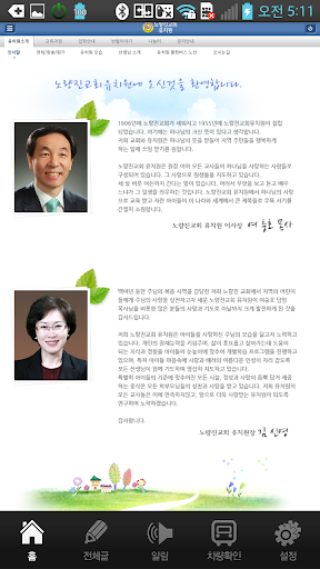 인사말/ 연혁, 원훈, 원가/ 유치원 모습/ 선생님 소개/ 유치원 통학버스 노선/ 오시는 길