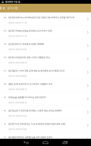 Wi-fi가 빵빵한 곳 + 배터리가 빵빵한 상태라면 주저 없이 논단기 강의실 어플을 실행해주세요. 오늘 볼 강좌, 내일 볼 강좌를 미리 다운로드해 두시면 wi-fi 및 데이터 연결이 안되어 있을 때에도 언제든지 강의를 이용하실 수 있습니다.