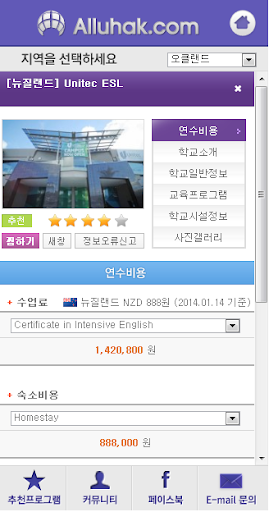뉴질랜드 추천 어학교의 예상견적 및 학교정보, 사진등과 같은 뉴질랜드어학연수를 위한 실질적인 정보로 가득한 올유학의 뉴질랜드어학연수 어플리케이션입니다.