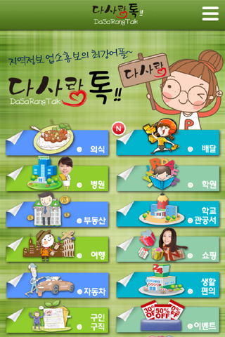 지역상권및 생활정보를 전화번호부나 기타안내책자가 필요없이 다사랑톡한곳에 모아놓은 상가통합어플입니다.