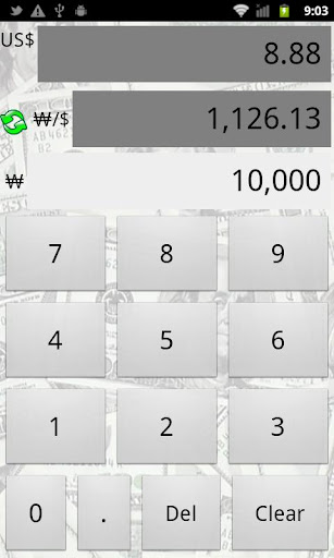 미국 달러화와 한국 원화를 변환하는 환율 계산기 입니다.