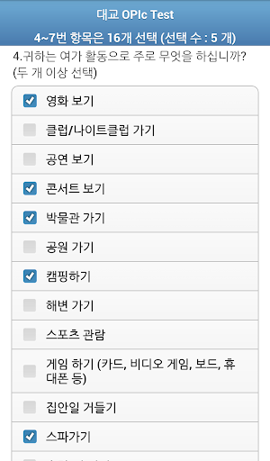 - OPIc 모의시험인 1~12(15)문제의 질문 청취 후 답변 진행