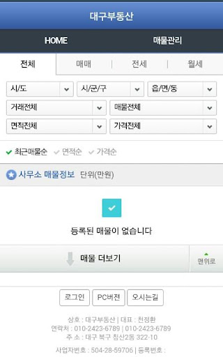 대구 전지역 매물을 실시간으로 스마트폰을 통해서 확인하실수 있습니다.