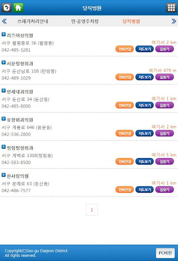 - 쓰레기처리안내, 민/공영주차장, 당직병원, 사회복지, 보건소, 문화체육, 전통시장, 자치센터프로그램안내, 도로명주소