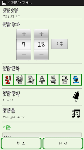 알람을 끄는 방법을 1 to 50, 받아쓰기 등의 5가지로 설정할 수 있는 알람이다.
