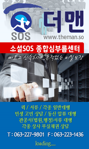 신뢰와 믿음의 소셜sos 회사 더맨은 퀵서비스,각종서류대행,민생고민상담,동산압류대행,관공서(법원,행정)서류대행,각종상사 부실채권상담,일반대행 등을 주 업무로하는 소셜sos 종합대행 agency입니다. 무엇이든 도움이 필요할땐 주소창에www.theman.so 또는 다음카페"더맨sos"를 찾으세요!