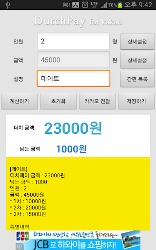 더치 페이를 계산할 때는 편리한 더치 페이 계산기, 더치페이 for kakao를 이용해보세요.
