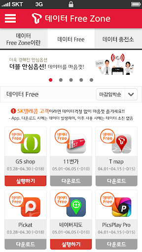 - '데이터 Free' 마크가 표기된 App.에서는 데이터 통화료 걱정없이 마음껏 사용하세요.
