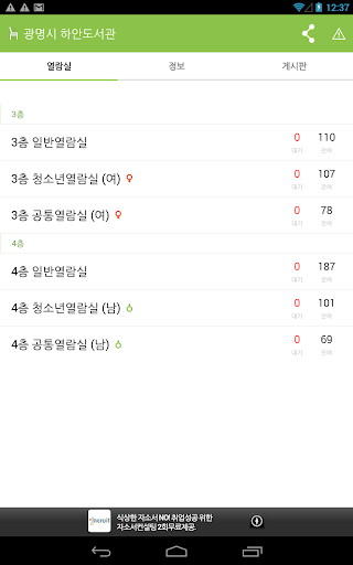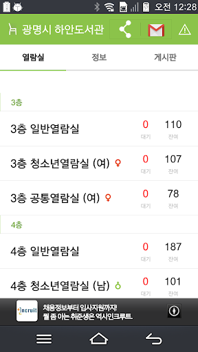 * 열람실별 좌석수 확인