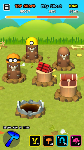 - 자동망치, 두더지덫, 자석, 번개의 다양한 아이템을 사용해 싹쓸이 하세요!