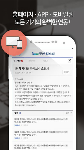 보다 원활한 소통과 편의를 위해 두산힐스빌만의 앱을 서비스 합니다.