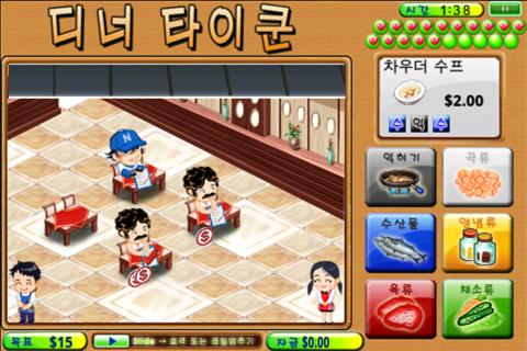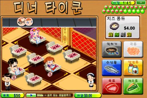 '디너타이쿤'은 일정시간 가게를 경영해서 매출을 올리는 레스토랑 경영 시뮬레이션게임입니다.