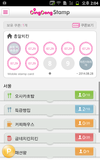 정보 : 딩동스탬프를 이용하는 가맹 매장의 정보를 한눈에 보며 스탬프도 적립 가능