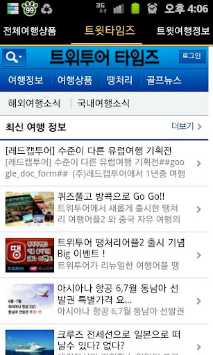 더블어 땡처리&공짜여행2와 함께 런칭하게 된 트위투어타임즈(http://twitour.com)를 어플리케이션 안에서 같이 만나보실 수 있습니다. 트위투어타임즈를 통해 여행상품 뿐만 아니라 세계 여러 여행지의 유익한 정보들을 만나보실 수 있습니다.