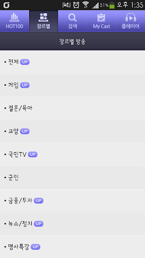 - 게임, 결혼/육아, 교양, 군인, 금융/투자, 뉴스/정치, 명사특강, 문화/예술, 뷰티/스타일, 스포츠, 어린이, 어학(영어/일본어/중국어), 여행, 연애, 영화, 음악감상, 의학/건강, 전문정보, 종교, 지역단체, 책, 청소년, 취미, 취업/직장, 컴퓨터/휴대폰, 토크