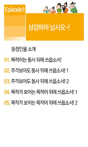 -레알 기발한 사투리 영작법 3의 Episode 1은 상감마마, 중전마마, 세자저하, 공주마마 그리고 그들의 선생님인 홍 역관이 함께 목적어와 보어 부분을 마치 한 편의 시트콤처럼 학습하는 내용입니다.