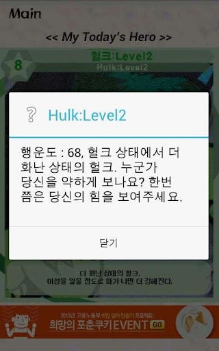 - 오늘의 운세 처럼 하루에 한번 여러 영웅들 중 자신에게 맞는 영웅을 찾아서 하루의 조언을 해줍니다.