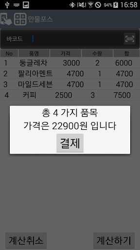블루투스 바코드 스캐너를 이용한 포스 지원 어플!